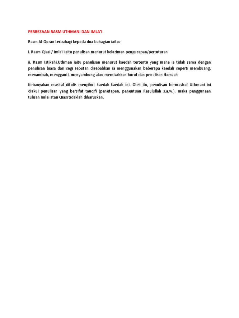 Perbezaan rasm uthmani dan imlai. Dari pengertian di atas selanjutnya Rasm terbagi menjadi 3 jenis yaitu Rasm Qiyasi Rasm Arudhi dan Rasm Utsmani. Kalimah yang mempunyai dua macam Qiraat atau lebih.